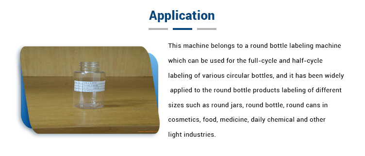 Deze machine behoort tot een etiketteermachine met ronde flessen die kan worden gebruikt voor de volledige cyclus en halve cyclus etikettering van verschillende circulaire flessen, en het is op grote schaal toegepast op de etikettering van ronde flesproducten van verschillende groottes zoals ronde potten, ronde fles , ronde blikken in cosmetica, voedsel, medicijnen, dagelijkse chemische en andere lichte industrie. Samenstelling van apparatuur: elektrische kast, transportmechanisme, afzonderlijk flesapparaat, rollabelapparaat, borstellabelapparaat, 1 # etiketteermotor, besturingssysteem en besturingssysteem.
